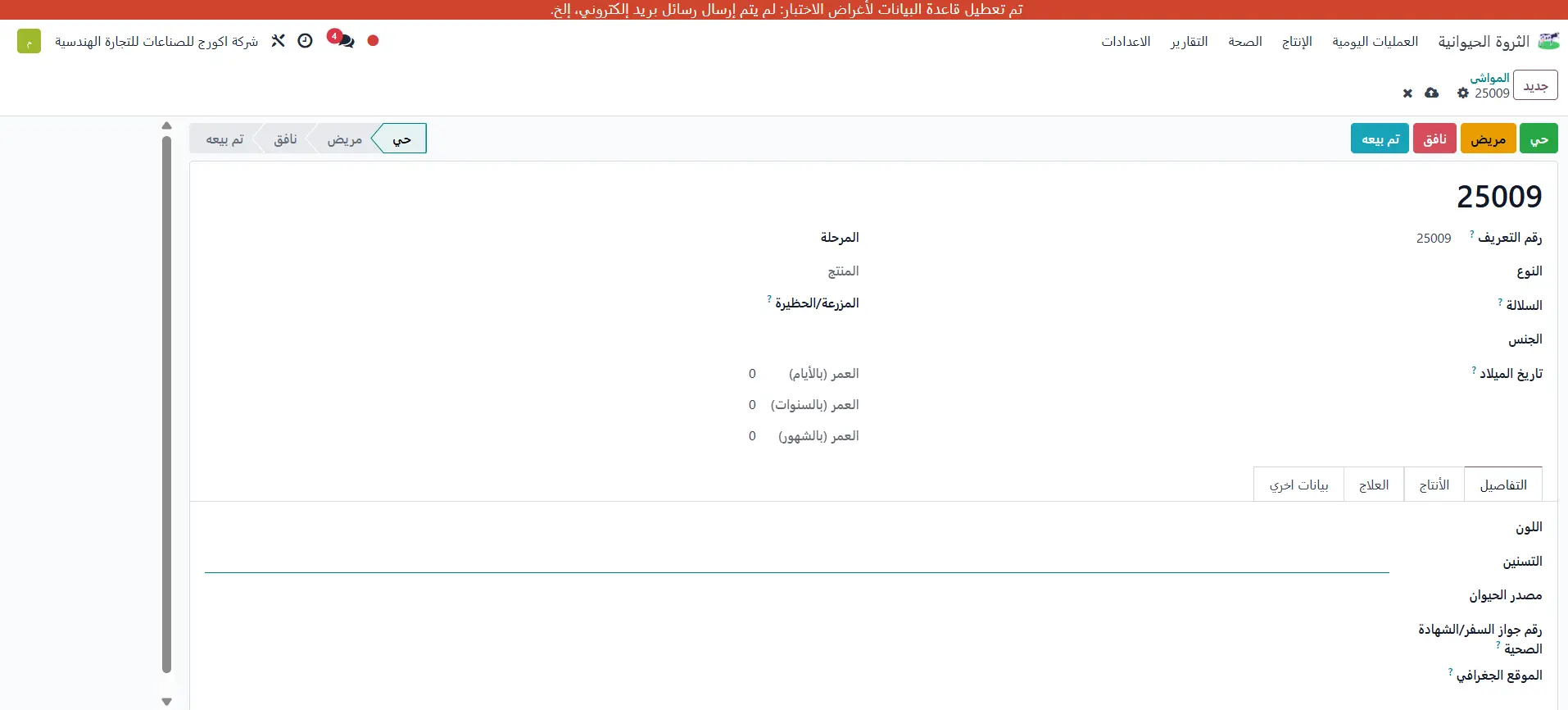 تحكم كامل في إدارة المزارع والحيوانات من التسجيل وحتى الإنتاج والمبيعات. يشمل تتبع الحالة الصحية، الرعاية البيطرية، الولادات، الإنتاج، وضبط الجودة، مع دعم كامل للتقارير والتنبيهات.